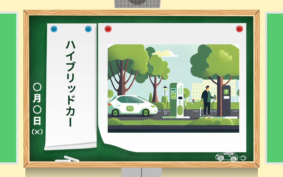 「ハイブリッドカー」とは、「エンジンとモーター二つの動力で動く車のこと」です