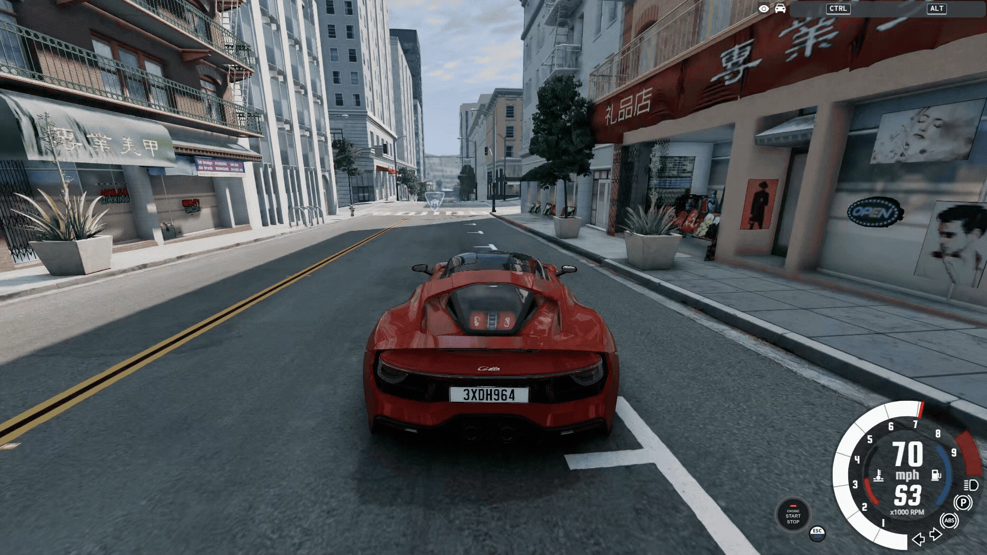 走らせるのは西海岸の街中で圧倒的な性能を見せつけたリアエンジン・リアドライブ方式(RR)のスポーツカー、カタログスペック上は本作でも最高クラスの数値を誇るマシンです。