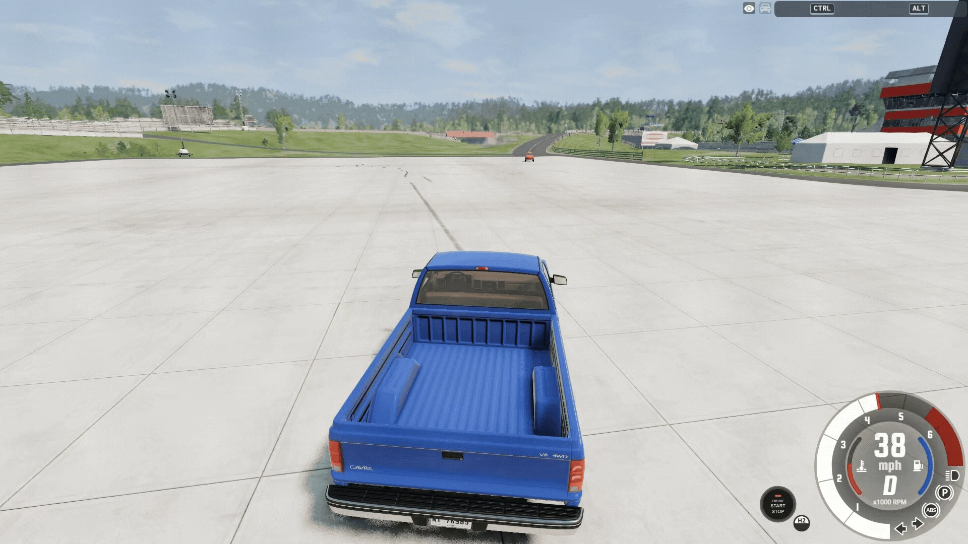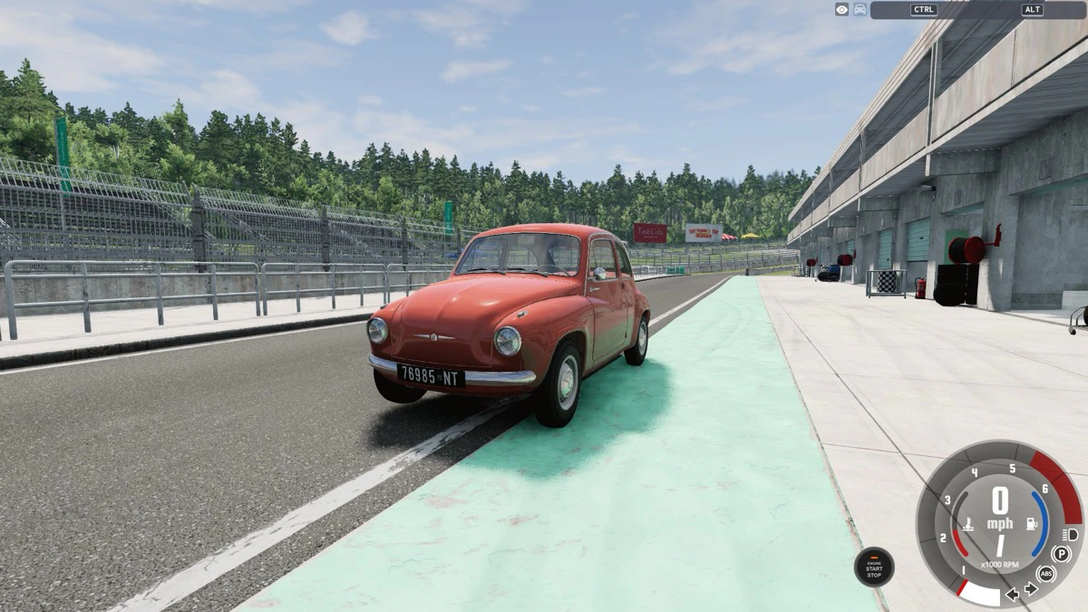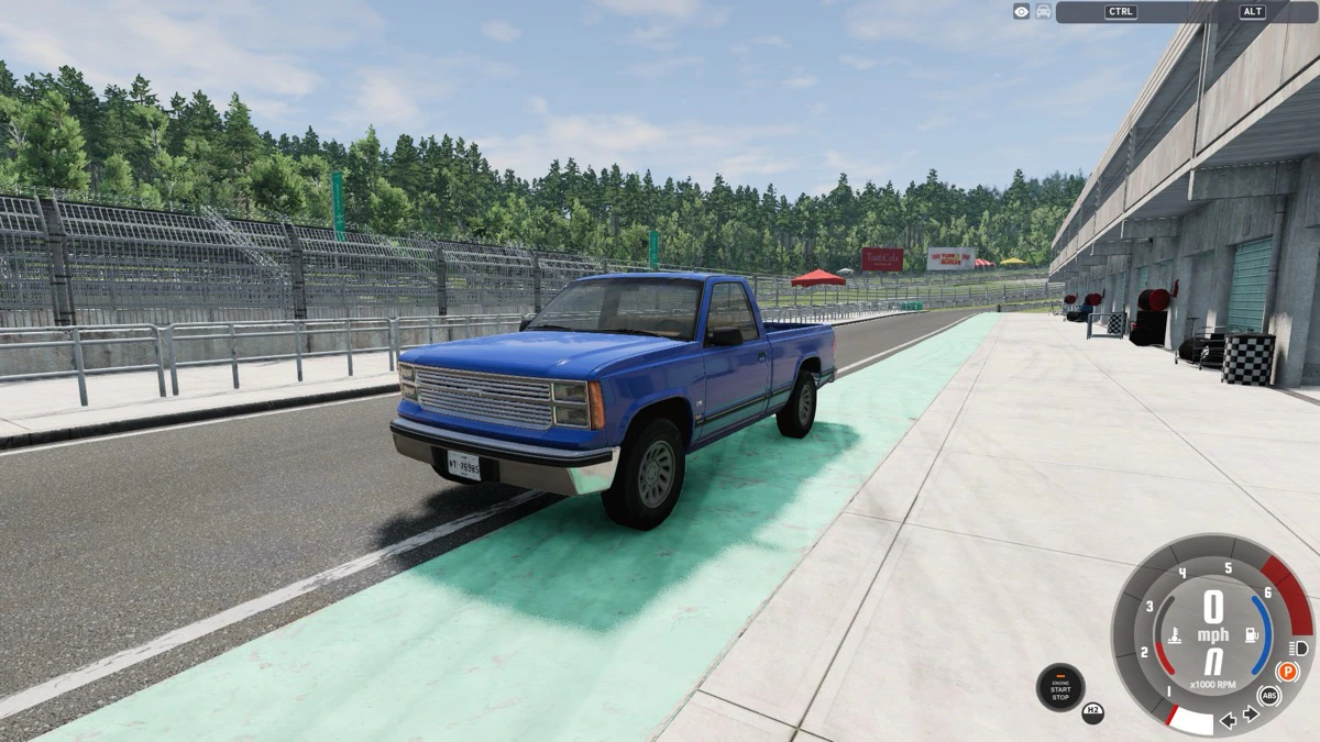 右下の「Start Freeroam」をクリックすれば、自由に走れるテストコースに出ることができます。一般的なキーコンフィグでは、キーボードの上キーで前進、下キーで後退、左右のキーでハンドルを切ることができます。困ったときにはRキーでリセットしてください。