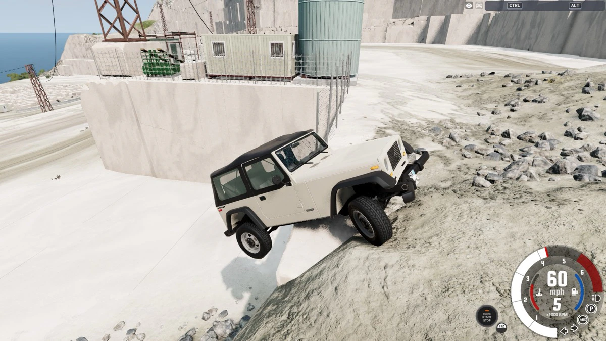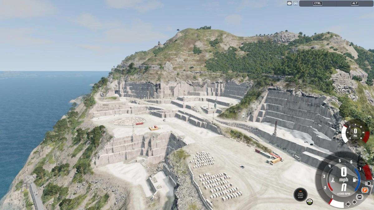 大都市の真ん中からジャングルまで。『BeamNG.drive』にはインストール直後から様々なコースが収録されています。今回は、砂地・凹凸・傾斜と悪路の三条件が整ったイタリアの採石場を選んでみましょう。